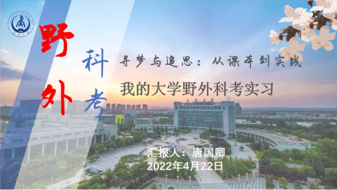 第五项,已考上公司地质学专业硕士研究生的ylzzcom永利总站线路检测2018级本科生唐国卿同学,以“寻梦与追思:从课本到实践——我的大学野外科考实习”为题,通过图片、视频展示等形式为大家讲述了其在四川峨眉山、新疆天山和陕西太白山、秦岭等地的科考经历,带大家进一步感受了大自然的魅力和地球科学文化的博大精深。