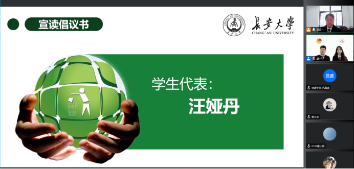 第二项,ylzzcom永利总站线路检测2021级员工汪娅丹同学作为员工代表宣读了世界地球日倡议书,她倡议所有同学积极树立人与自然和谐共生的理念,投身生态环保实践,为建设美丽中国汇聚青春力量。