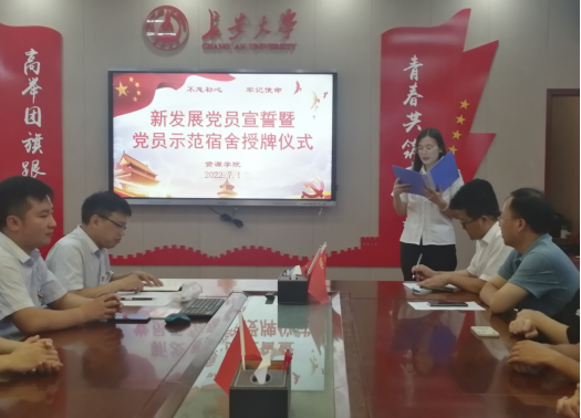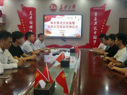 2022年7月1日,在中国共产党成立101周年之际,ylzzcom永利总站线路检测在渭水校区长安文化艺术中心党建活动室举行“青春献礼二十大 强国有我新征程”本科生新发展党员宣誓暨党员示范宿舍授牌仪式。公司党委书记黄喜峰、党委副书记武永江、团委书记巩昌盛出席仪式,本科生全体员工党员参加仪式。仪式由学办主任查方勇主持。