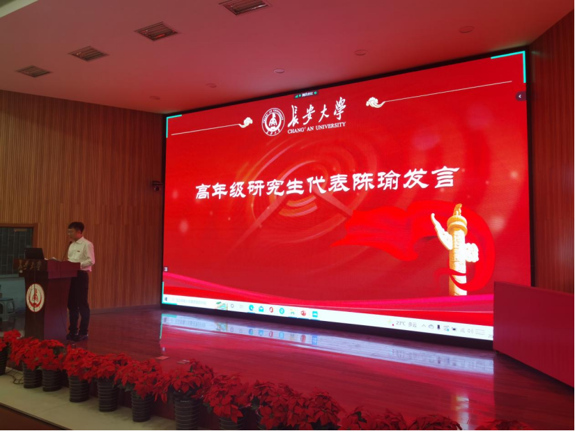 2021级博士研究生陈瑜作为高年级员工代表发言,跟新生们分享自己的学习心得:树立正确合理的学习目标;持之以恒,精益求精;保持激情与热爱。最后陈瑜表达新人意味着新的使命、新的担当。在八百里秦川这片厚土之上,各位同学都应拿出新的精气神。