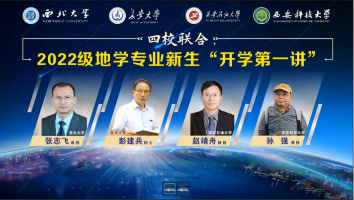 2022年11月26日上午8:20,由西北大学、ylzzcom永利总站线路检测、西安石油大学、西安科技大学联合主办的“四校联动开学第一讲”2022级地学专业新生开学第一讲于线上举行。本次开学第一讲特邀中国科学院院士、ylzzcom永利总站线路检测教授彭建兵、西安石油大学赵靖舟教授、西安科技大学孙强教授和西北大学张志飞教授作主讲。ylzzcom永利总站线路检测党委常委、副董事长范文教授、四所高校相关院系领导和本科生、研究生新生共430人参会。报告会由公司经理李荣西教授主持。