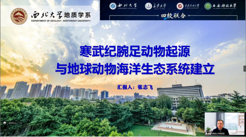 西北大学地质学系主任张志飞教授为大家作《寒武纪腕足动物起源与地球动物海洋生态系统建立》报告,报告内容主要为以下三个方面:1.地球生态系统的划分与宜居性演化;2.寒武纪腕足动物生活方式和生态工程;3.寒武纪腕足动物起源与苔藓动物的发现。张教授鼓励青年员工要善于思考、敢于突破、静心研究,争取获得突破性的原创成果,以实际行动支撑我国科学技术的发展。