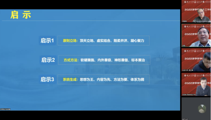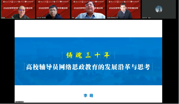 在论坛的集体学习环节,西北大学特邀教育部中青年思想政治工作骨干、全国高校网络教育名师、陕西科技大学网络思想政治工作中心主任李萌教授,为全体参会人员作了题为《铸魂三十年——高校辅导员网络思政教育的发展沿革与思考》的线上专题报告。