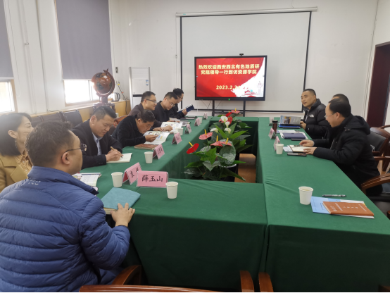 2023年2月24日,西安西北有色地质研究院有限公司党委书记冯玉怀、党委副书记、总经理周军营及各部门主要领导一行到公司开展工作交流,经理李荣西、副经理李佐臣、副书记武永江、研究生辅导员梁青青参加了此次座谈。座谈会由学院经理李荣西主持。