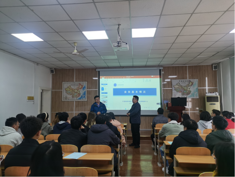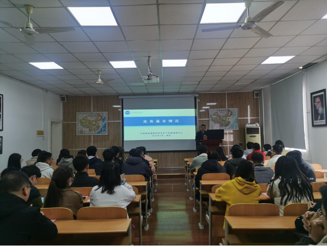 宣讲会伊始,西安矿产资源调查中心人事部乔莉主任向在场员工放映单位宣传片。向同学们展示了调查中心的概况、发展历程、行业优势等。并在宣传片播放完毕后给在场员工发送了招聘简章以及岗位招聘详细情况的宣传单。鼓励在场员工到西安矿产中心进行实习,并期待大家加入他们的大家庭。