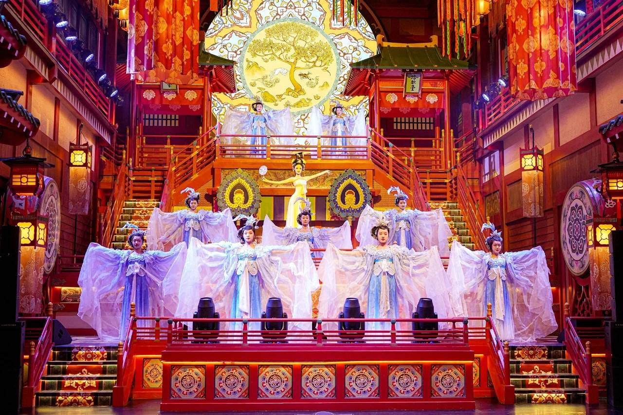 走入“长安十二时辰”街区,在上元安康踏歌台观赏“只应天上有”的《霓裳羽衣舞》,在灯火璀璨的花萼相辉楼中为鼓乐演奏节目《大唐燕乐》驻足,各种真人NPC也尽情演绎,李白饮酒作诗,杜甫忧国忧民,玄奘负笈而行,通过这些人物NPC,大家体会到这些历史名人的抱负与情感,也身临其境地感受了古都长安的鲜活生命力。景区内的布置陈设精美雅致,小到一只灯笼,大到雕梁画栋的楼阁,步入其中便是不夜长安街市,尽显长安市井风貌,大家携手作伴,在不同的景点打卡拍照,玩的不亦乐乎。