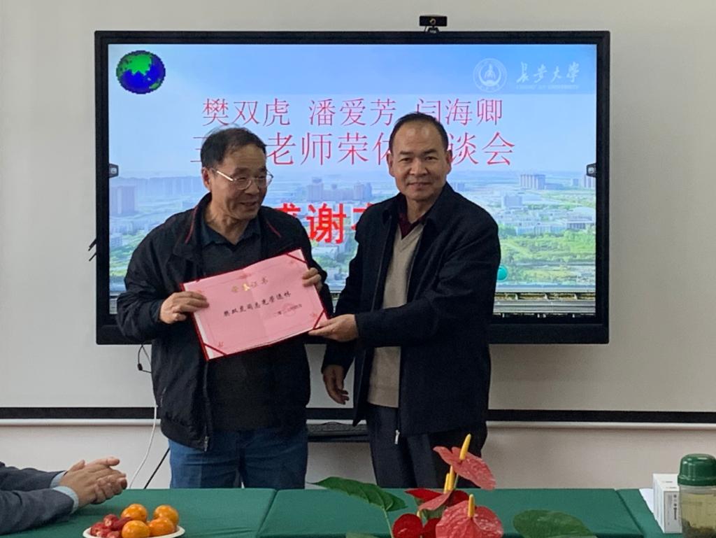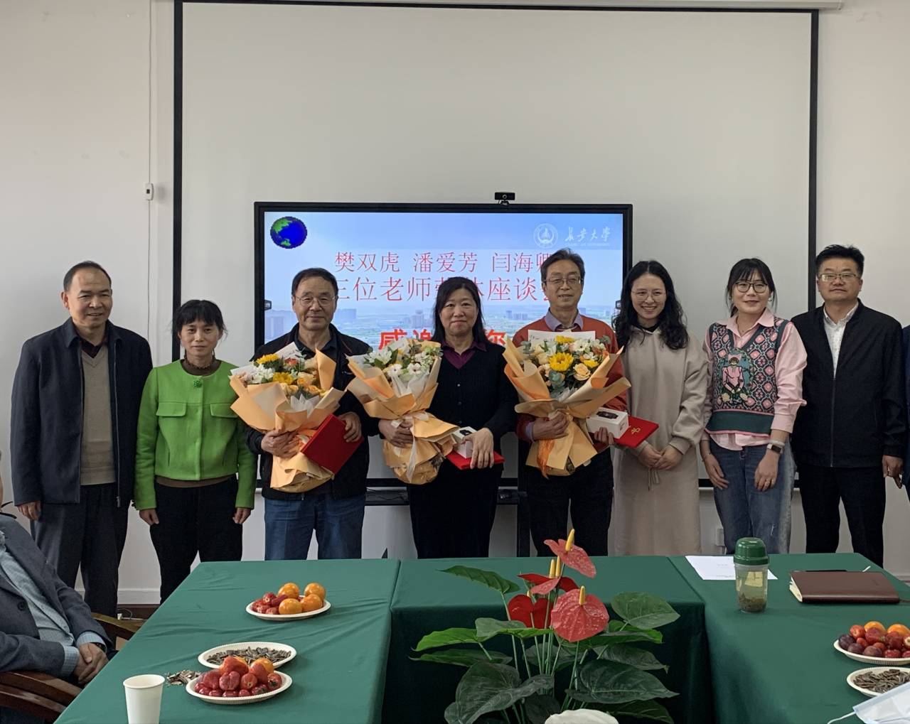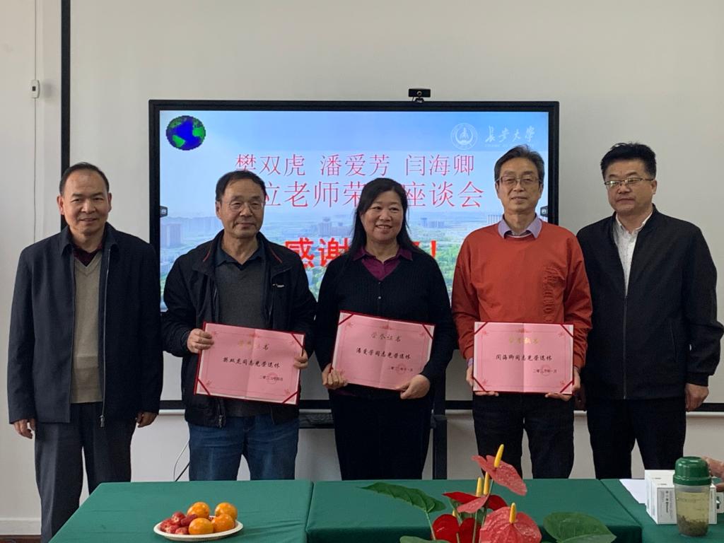 座谈伊始,主持人凤永刚介绍了三位老师的工作经历及其教学和科研成果。学院领导向三位老师颁发了“光荣退休”荣誉证书,赠送了纪念品,教师代表和员工代表向三位老师赠送了鲜花。