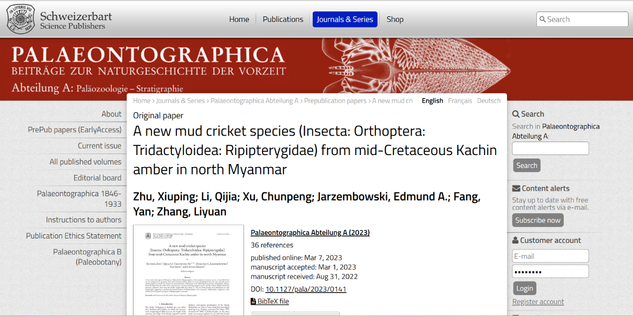 https://www.schweizerbart.de/papers/pala/detail/prepub/102734/A_new_mud_cricket_species_Insecta_Orthoptera_Tridactyloidea_Ripipterygidae_from_mid_Cretaceous_Kachin_amber_in_north_Myanmar