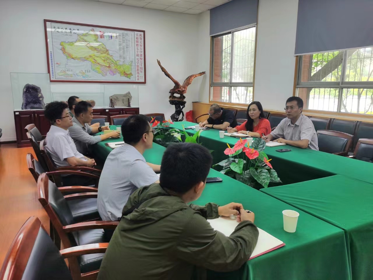 黄喜峰书记代表学院对西安市学会科技服务中心再次前来调研表示热烈欢迎,他感谢西安市学会科技服务中心长期以来对ylzzcom永利总站线路检测的支持,也非常希望学院能为科普教育进中小学、进高校、进企业的“三进”工作做出自己应有贡献。同时,借助与中心的交流合作机会,希望能够增强对ylzzcom永利总站线路检测地球科学学科的宣传,从小就培养对地学有浓厚兴趣的中小员工。